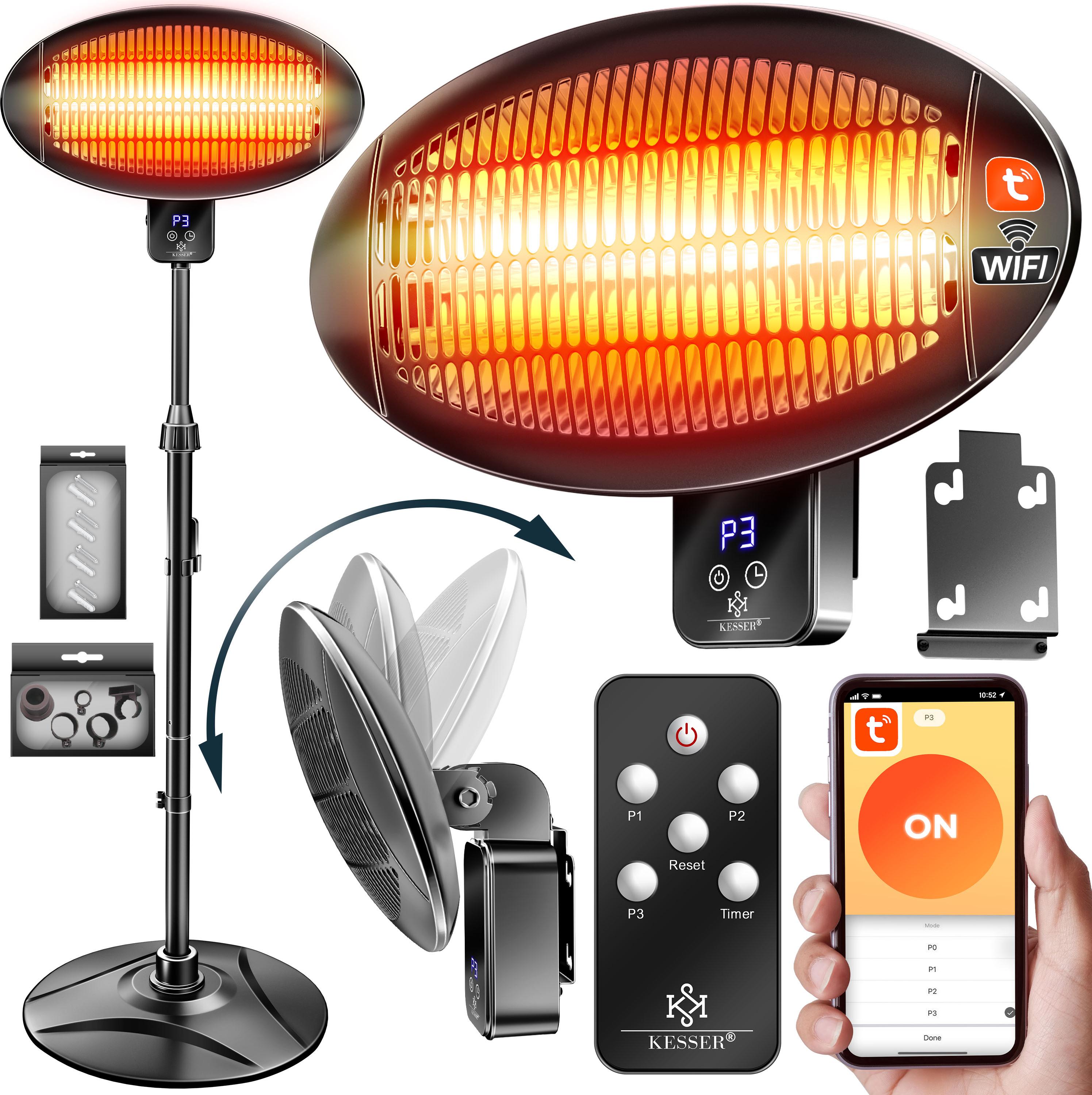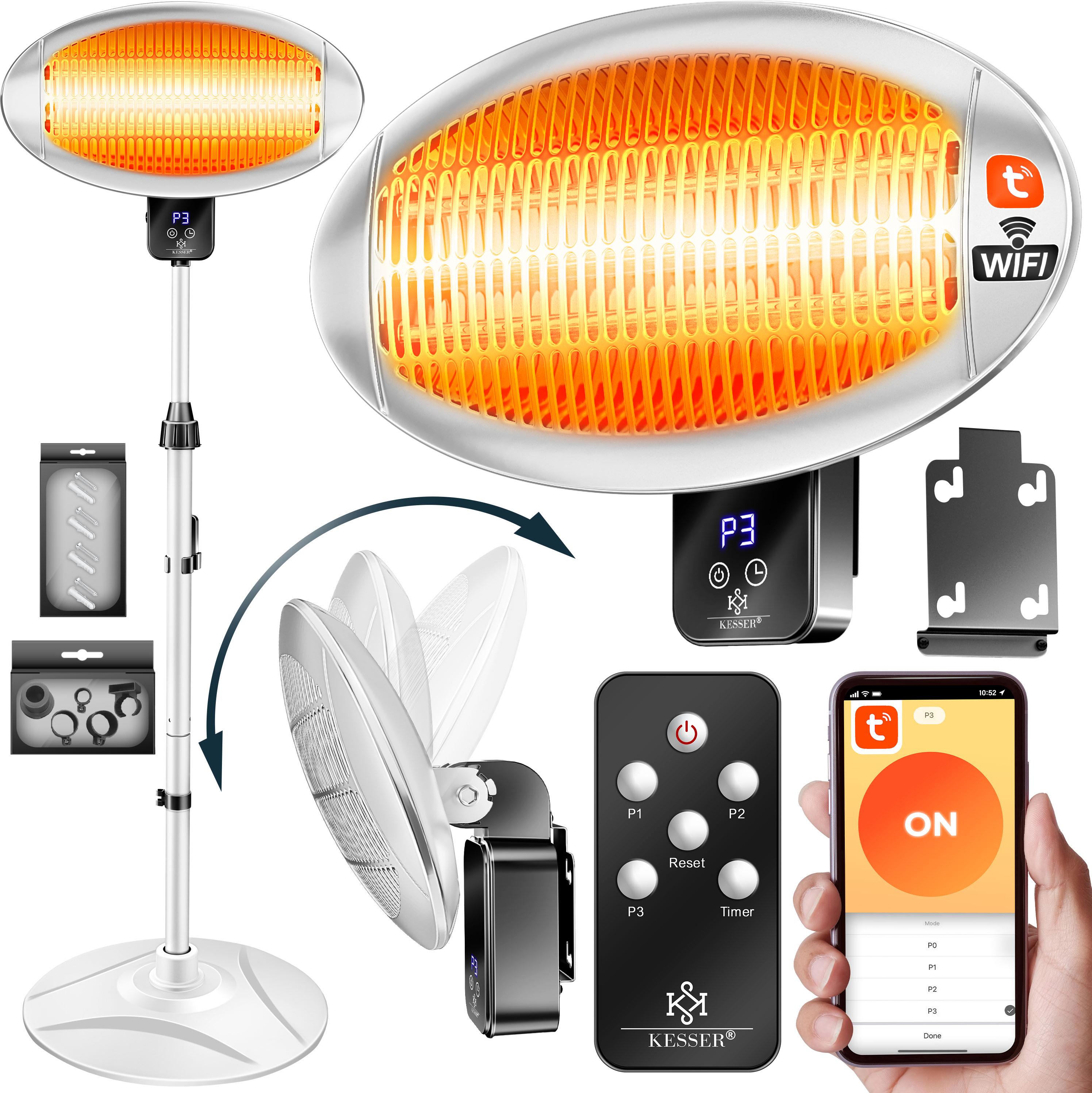 Der Kesser Heizstrahler bietet mit seiner maximalen Leistung von 2000 Watt sofortige Wärme für Innen- und Außenbereiche. Ideal für gemütliche Abende auf der Terrasse oder zum Beheizen von Indoor-Räumen.